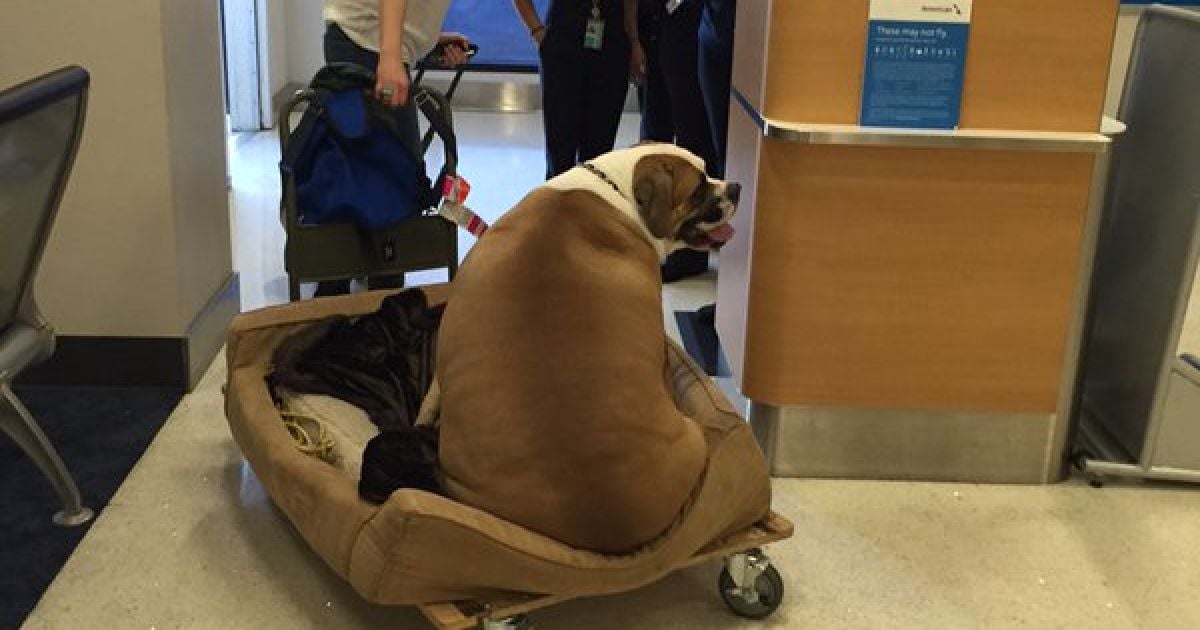 Днями у соцмережі потрапило кумедне фото песика, який летів разом із господинею першим класом авіакомпанії American Airlines. На знімку пухкий Генрі сидить у великому візку з м'якою підстилкою.