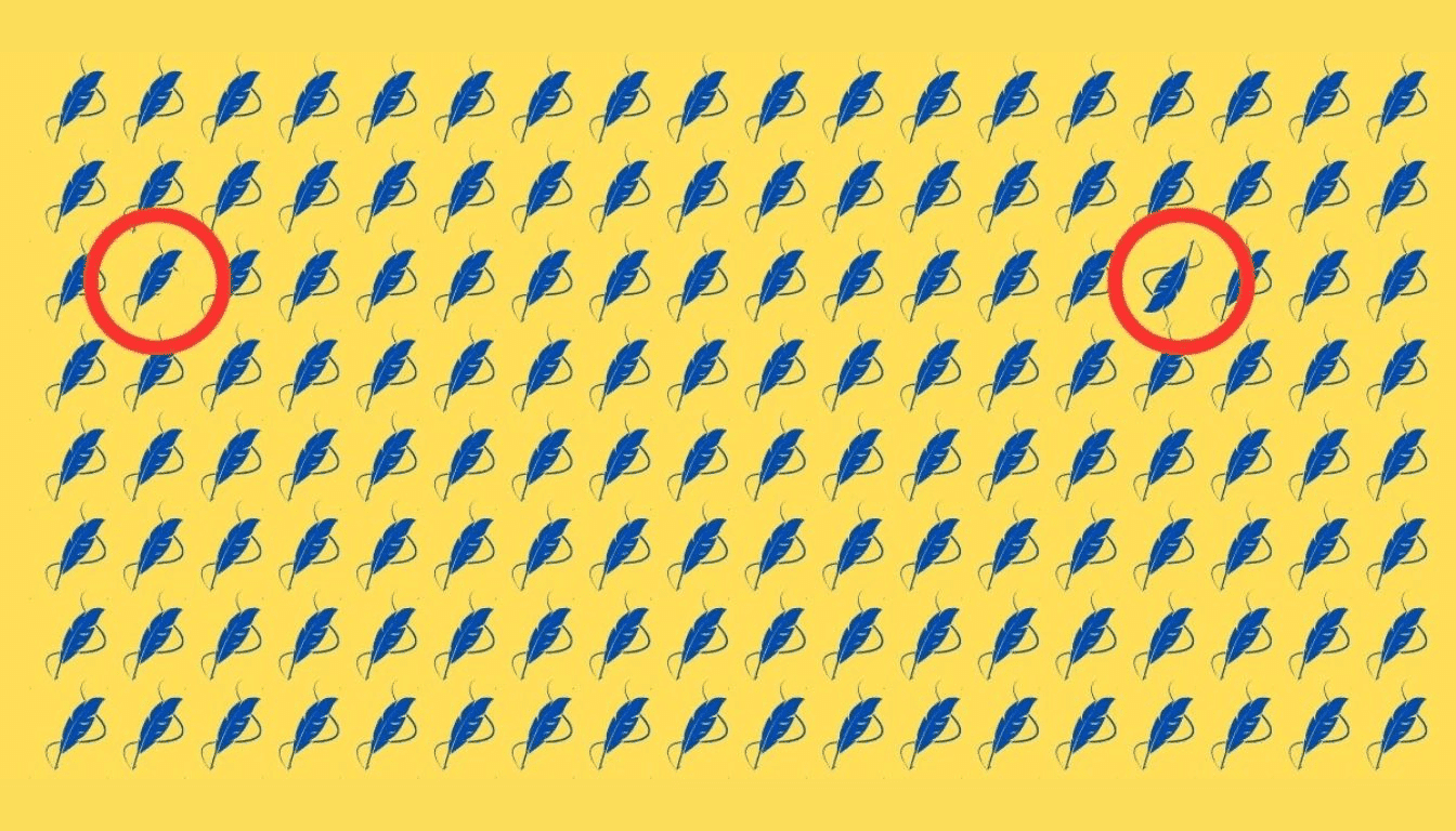 Завдання в тому, щоб знайти дві пір’їни, які відрізняються серед на вигляд однакових, за 18 секунд на малюнку.