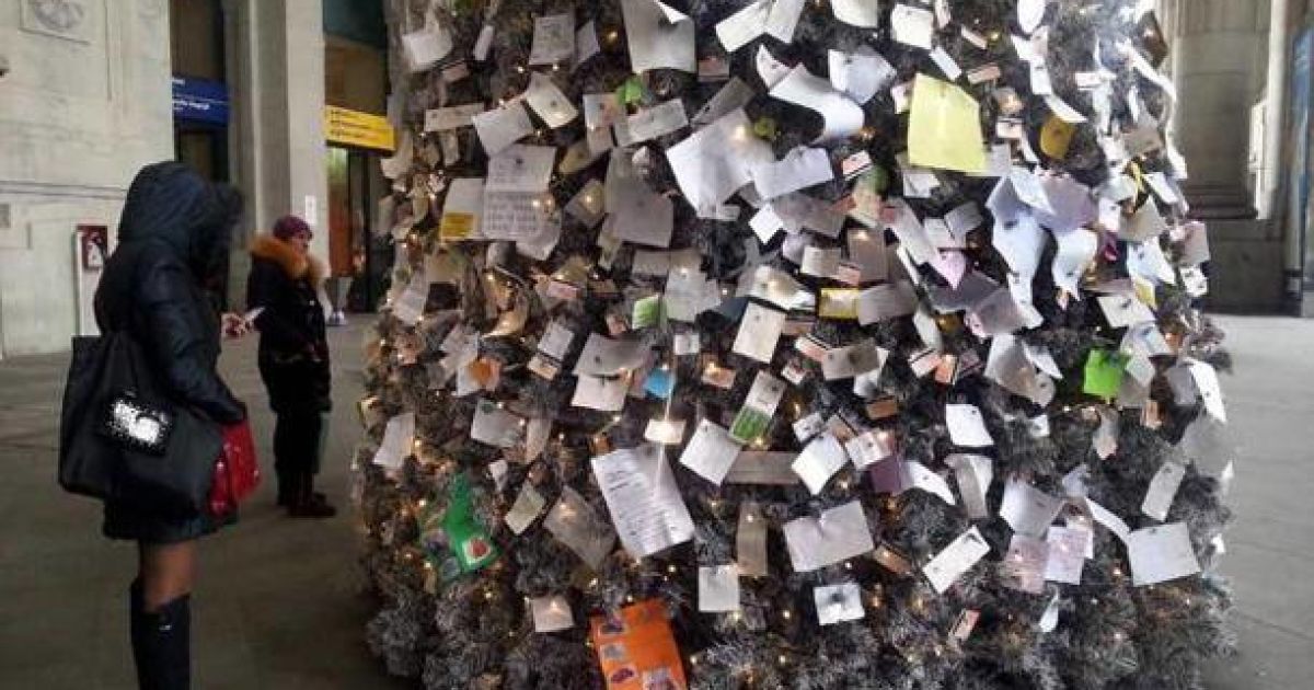 На центральному вокзалі Мілану з'явилося новорічне деревце, на яке можна повісити новорічну записку із проханням чи побажанням до Діда Мороза. Послання з проханнями залишаються на поштовій ялинці італійцями та туристами, — пише Euromag.ru.