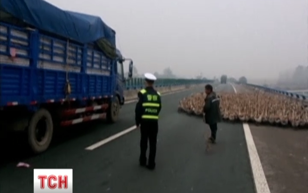 У Китаї на одній зі швидкісних магістралей гуси заблокували рух транспорту, йдеться у сюжеті ТСН.19.30.