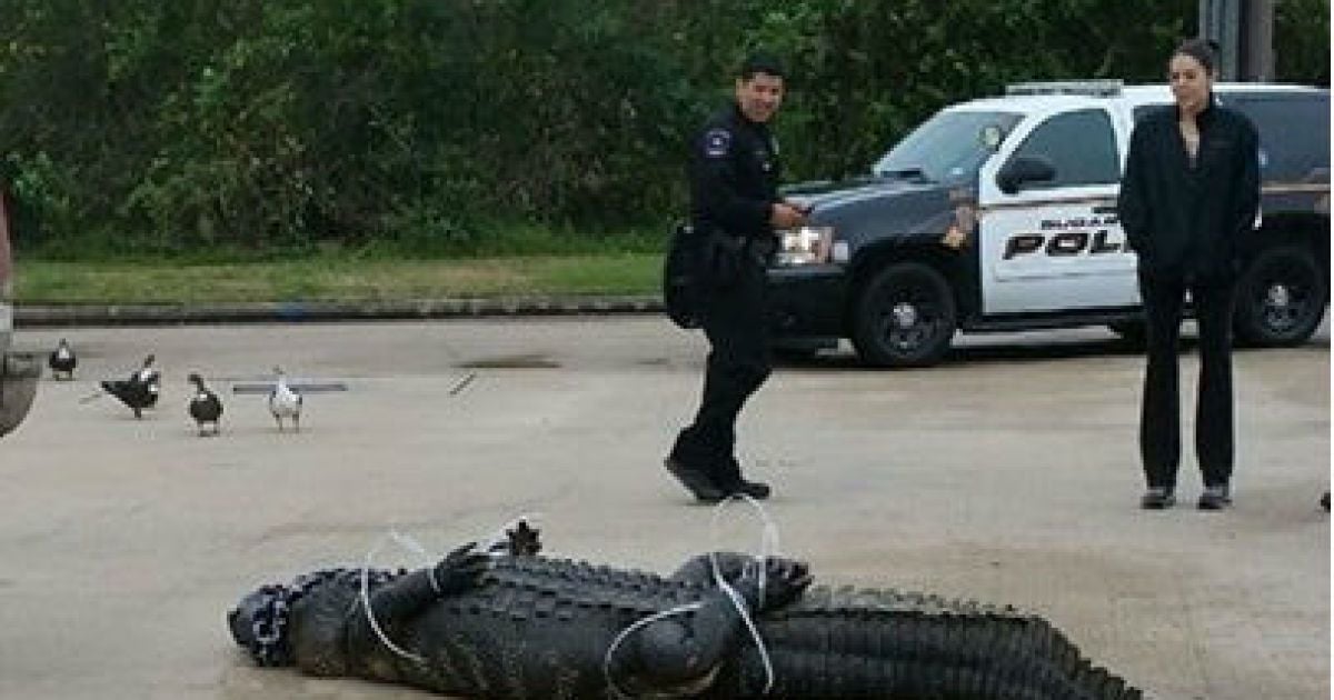 У місті Х'юстон (штат Техас, США) величезний крокодил забрів до торгового центру. Місцеві мешканці побачили алігатора на автомобільній стоянці і викликали поліцію, повідомляє CBS.