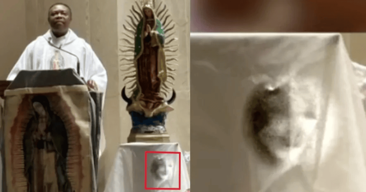 Парафіяни католицької церкви Святого Томаса Мора у Лас-Вегасі (США) заявили, що стали свідками «божественного знаку». У складках тканини біля вівтаря зі статуєю Діви Марії декілька парафіян помітили щось схоже на обличчя.