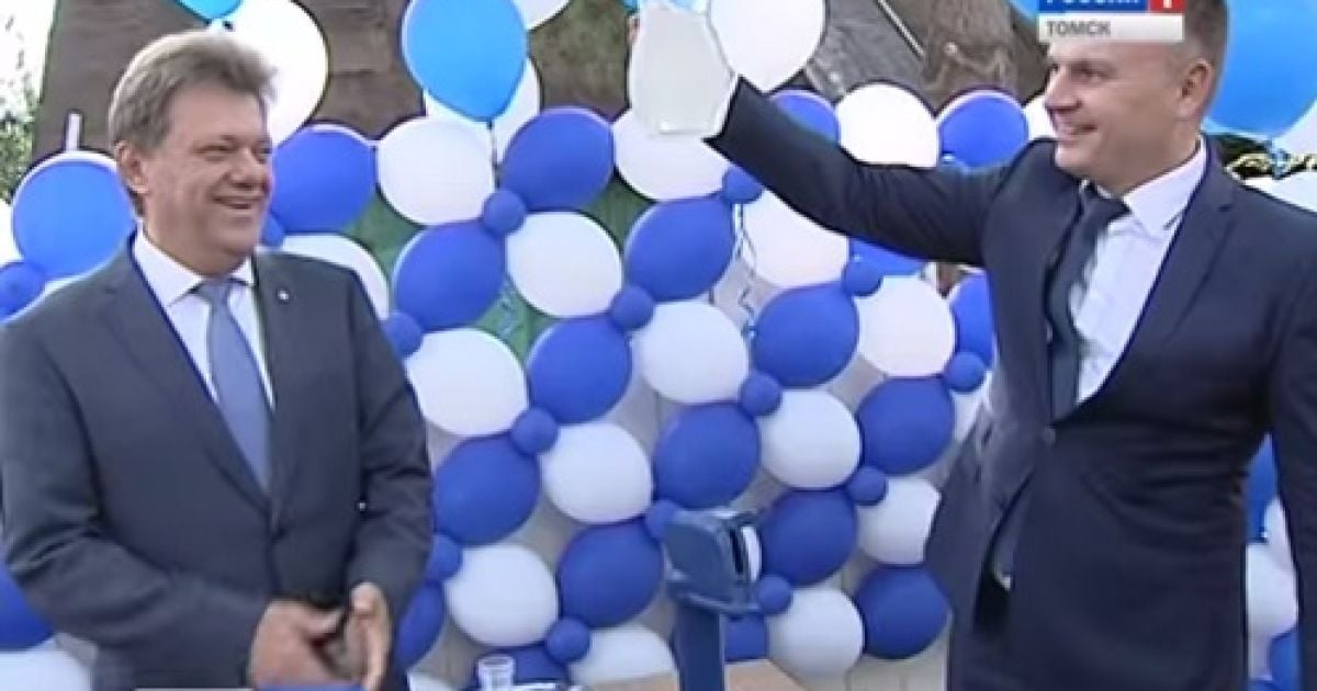 У російському Томську урочисто відкрили водоколонку на околиці міста. Захід відбувся з помпою – в ньому брали участь мер міста Іван Кляйн і спікер місцевої думи Сергій Панов. Вони перерізали червону стрічку.