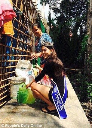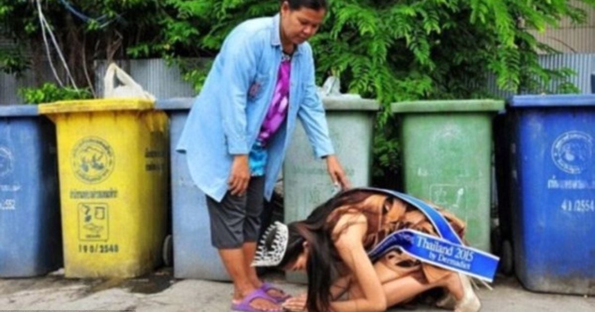 Соціальні мережі зворушили фотографії королеви краси Таїланду, яка стала на коліна перед своєю бідною матір'ю, яка працює прибиральницею.