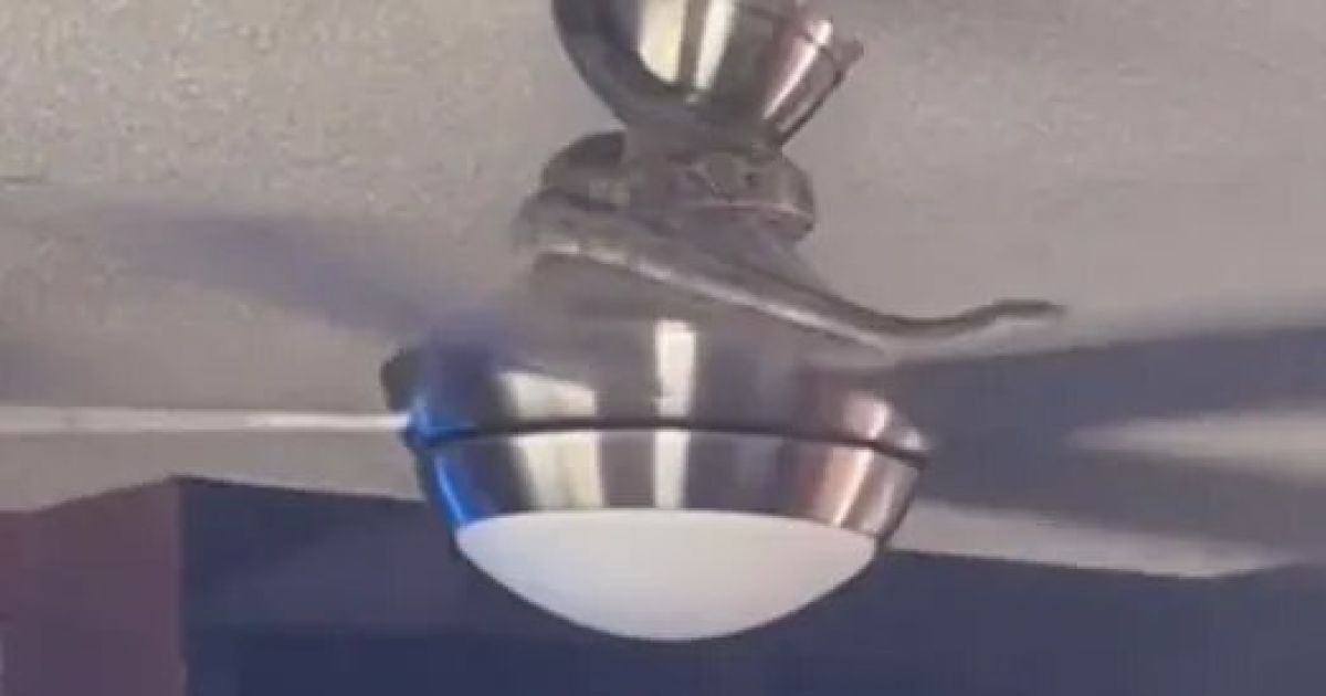 Жінка була приголомшена, виявивши змію, що обвивалася навколо стельового вентилятора.