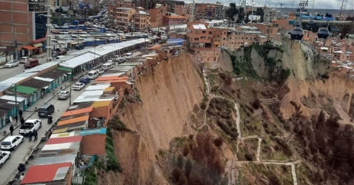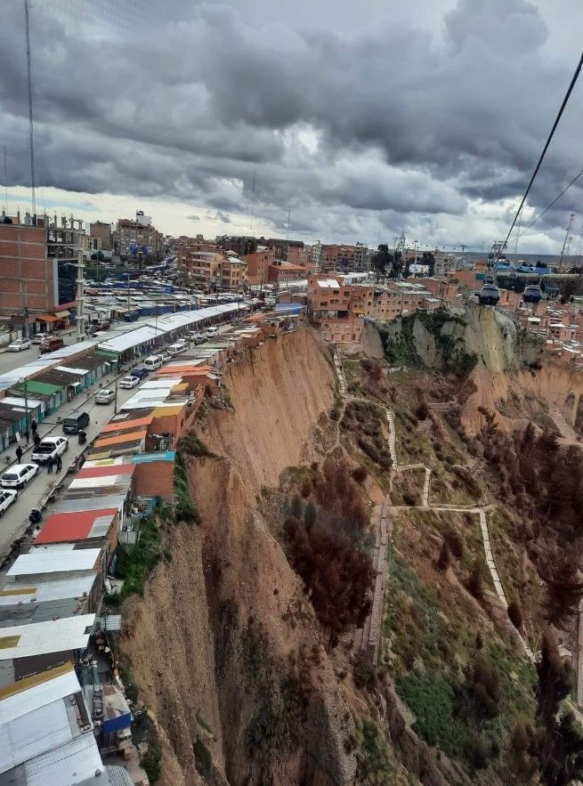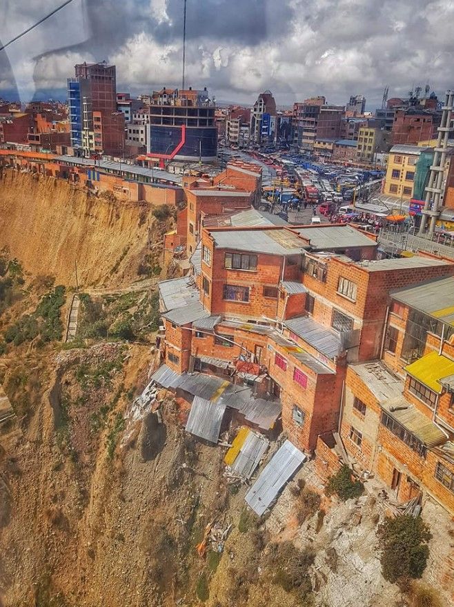 Сотні будинків, розташованих на краю крутої земляної скелі на околиці Ель-Альто в Болівії, називають "будинками самогубців" через високий ризик руйнівного зсуву.