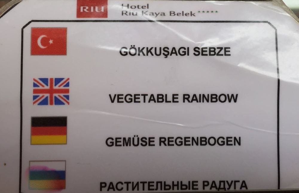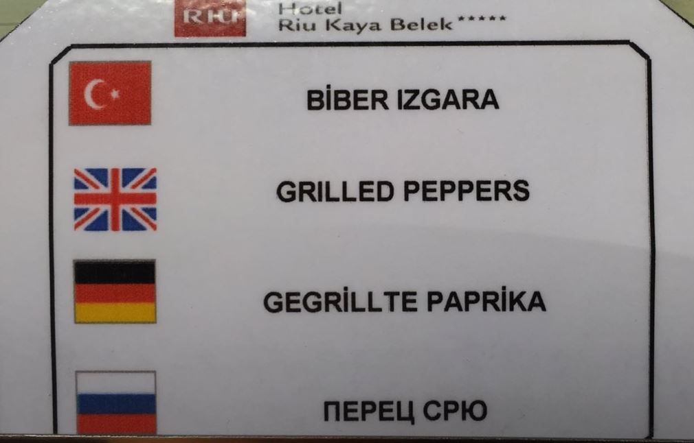 "Перець гриль" співробітники готелю переклали як "перець срю", "овочеву веселку" назвали "рослинною", а "м'ясну шаурму" - "м'ясо повертається".