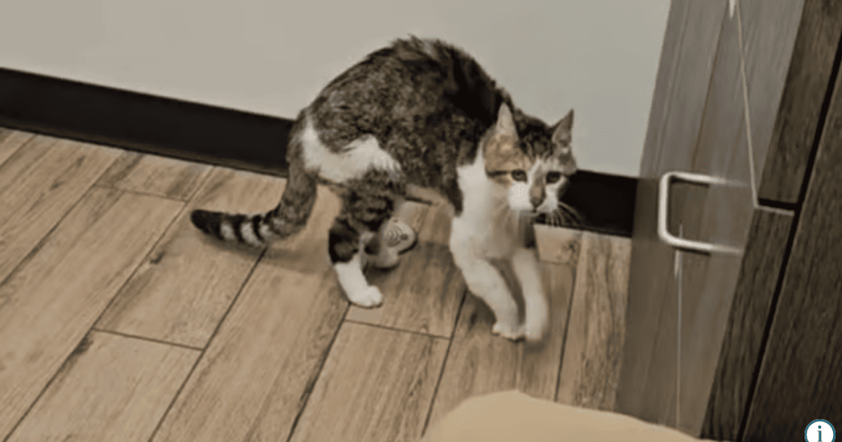 Катаріна зняла на відео свого кота Сейбру, коли той досліджував кабінет лікаря під час візиту до ветеринара.