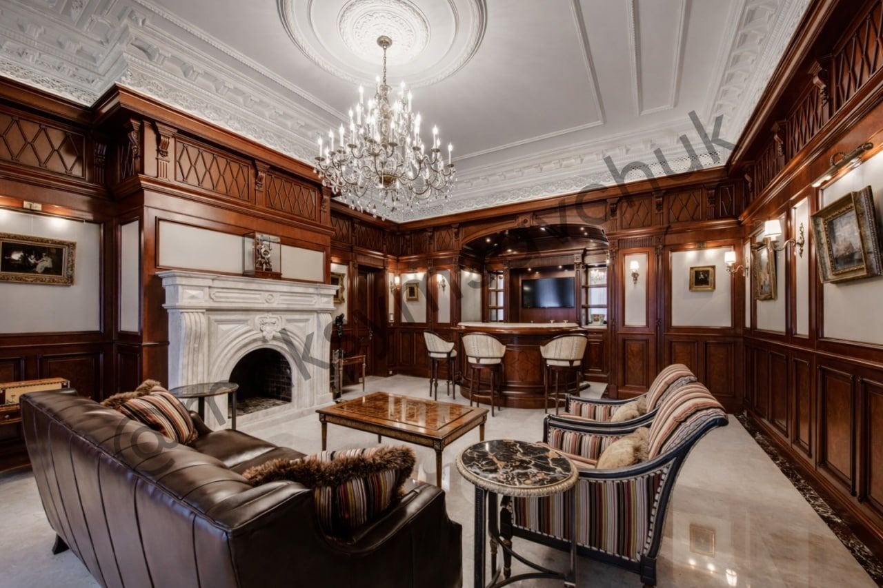 На другому — три спальні із санвузлами, кабінет, бібліотека, вітальня, сауна, душ, кімната, бар, дві гардеробні, два санвузли, дві спальні, вітальня з каміном, п’ять гардеробних і дві ванні кімнати.