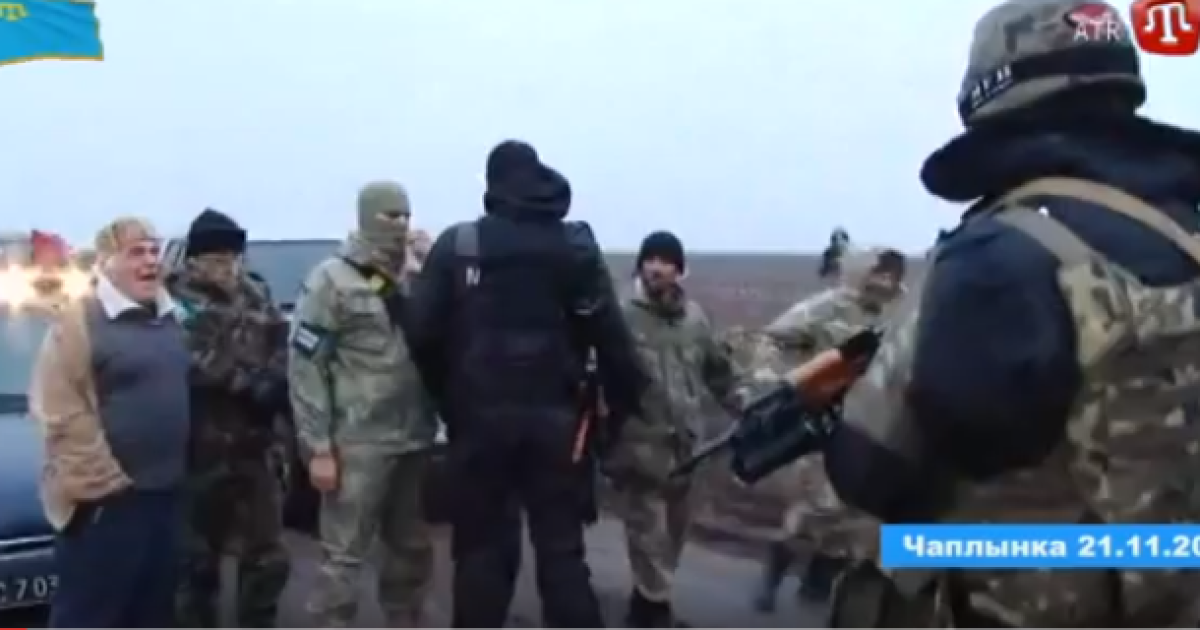 Кримськотатарський телеканал ATR показав відео штурму учасників блокади Криму бійцями Нацгвардії і батальйону "Херсон", який відбувся в Чаплинці 21 листопада.