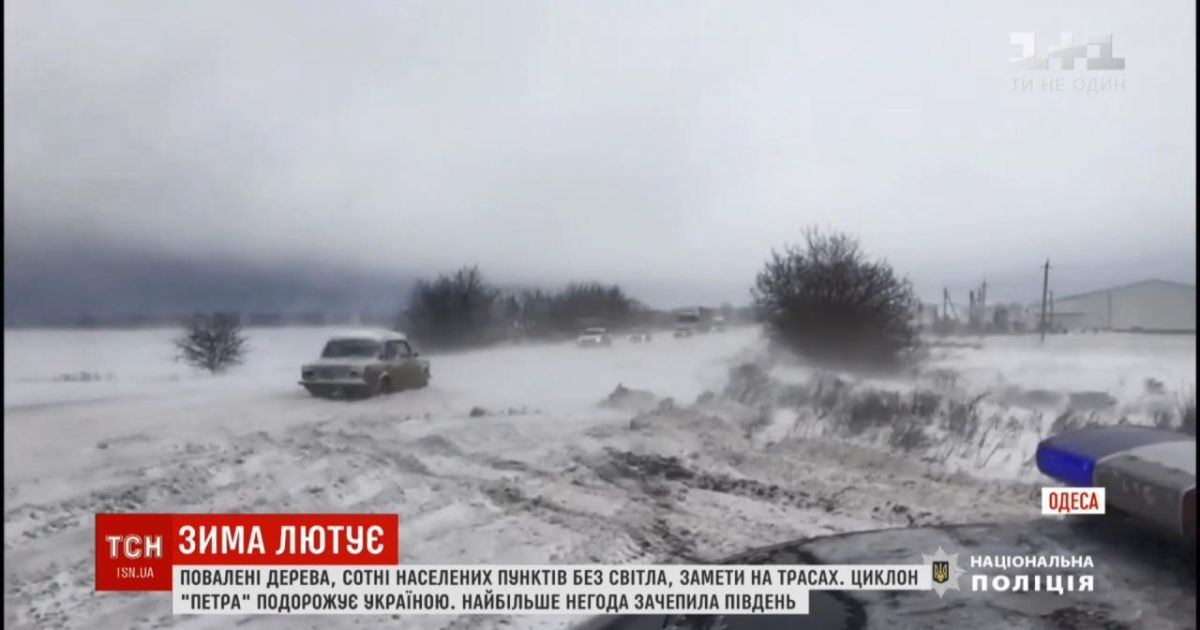 Одещина опинилася в епіцентрі циклону "Петра". Найбільше лиха негода наробила на півдні області. За ніч там майже дві сотні населених пунктів залишилися без світла. Через сильні перемети зупинився рух на трасі Одеса-Рені.