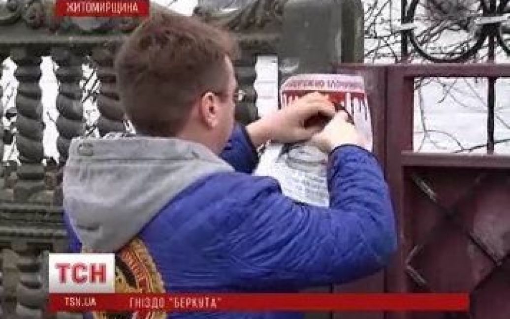 Однак активісти все одно причепили листівку з надписом "Обережно, злочинець!" на огорожу біля його батьківської хати.