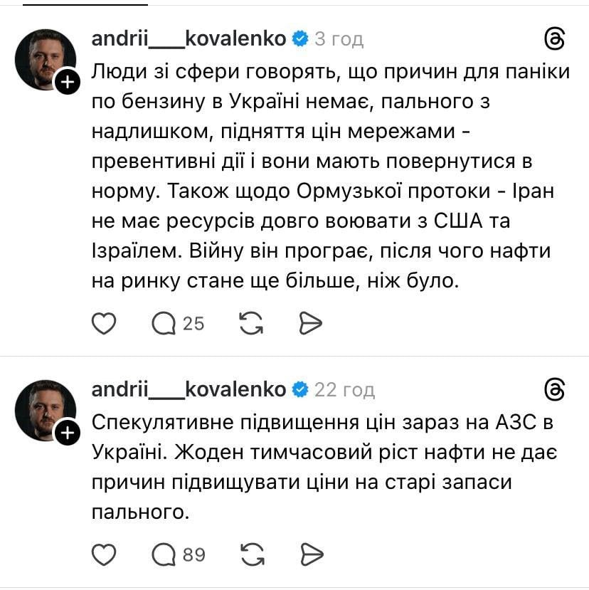 За словами експерта, перша хвиля здорожчання пального назрівала ще від лютого, а нинішні +2 гривні — це превентивний крок операторів у моменти невизначеності. Він пояснив, що якщо нафта й надалі підніматиметься у ціні, заправкам доведеться купувати нові партії за більші гроші. Тому мережі АЗС були змушені підняти ціни вже зараз, щоб мати кошти на наступні закупівлі.