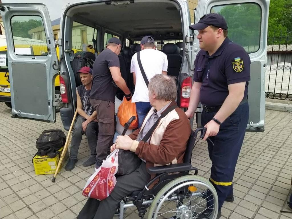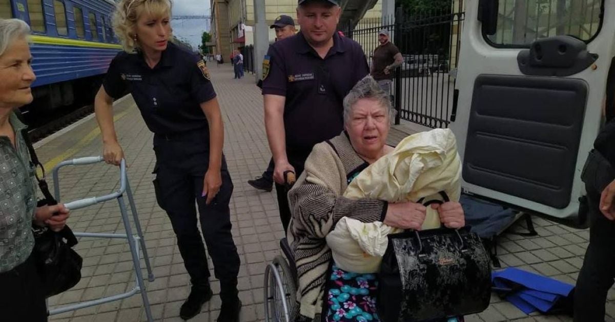 Серед евакуйованих були літні люди та хворі, яких довелося переміщати на інвалідних візках та ношах.