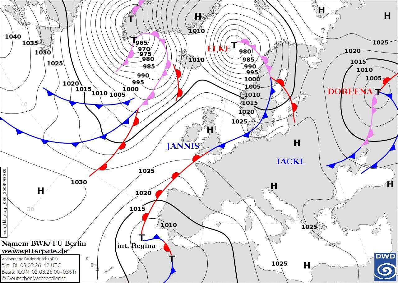 До України насувається циклон Doreena, який принесе мокрий сніг, ожеледицю та нічні морози до -4 градусів.