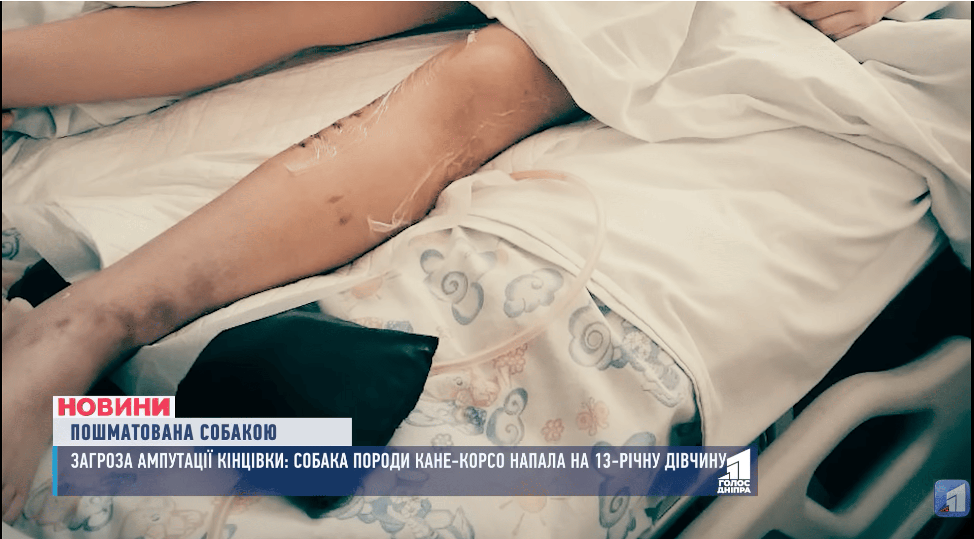 У селі Олександрівка Дніпропетровської області домашній собака породи кане-корсо понівечив 13-річну Кіру, коли та поверталася зі школи. Попри зусилля лікарів, дівчинці довелося ампутувати ногу через сильну інтоксикацію.