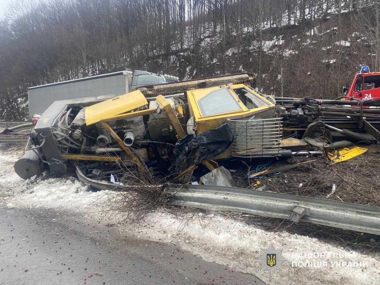 «Аварія трапилася за участі вантажівки зі спеціалізованим напівпричепом, завантаженим автомобільним краном, та позашляховика. 52-річний тернополянин, керуючи вантажівкою, не обрав безпечну швидкість на заокругленій ділянці дороги та виїхав на зустрічну смугу руху, де зіткнувся з позашляховиком», — йдеться у повідомленні.