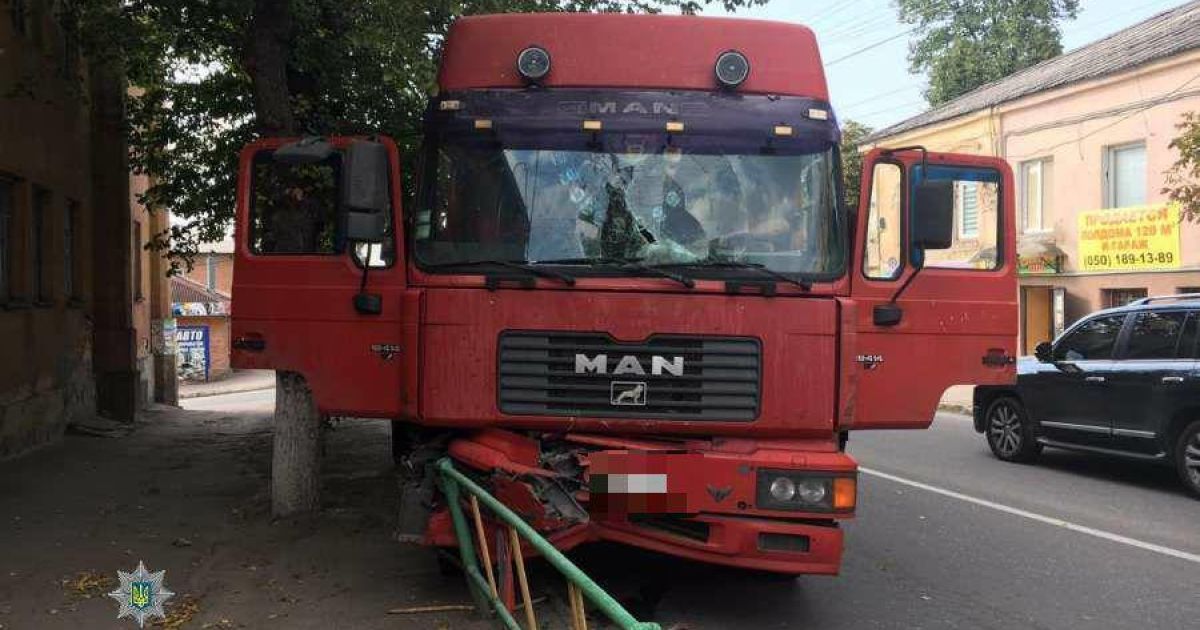 Дві ДТП за 10 хвилин. У Кропивницькому п'яний водій вантажівки потрощив дерево й паркан
