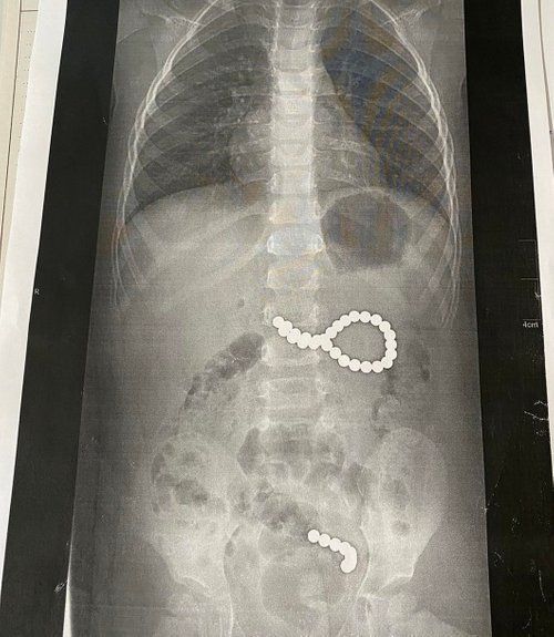 Дев’ять кульок під дією магнітного поля утворили ланцюжок і потрапили в кишківник, ще 27 кульок утворили неправильне коло і потрапити в кишківник не могли. Дівчинку довелося терміново оперувати, пише ZAXID.NET.