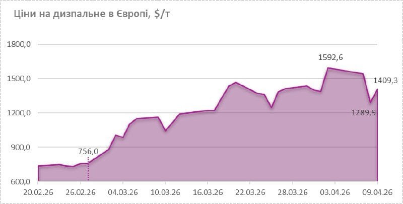 Європейські котирування на пальне, за якими Україна імпортує бензин та дизель, знову почали стрімко зростати після короткострокової паузи, пов’язаної з оголошенням тимчасового перемир’я на Близькому Сході.