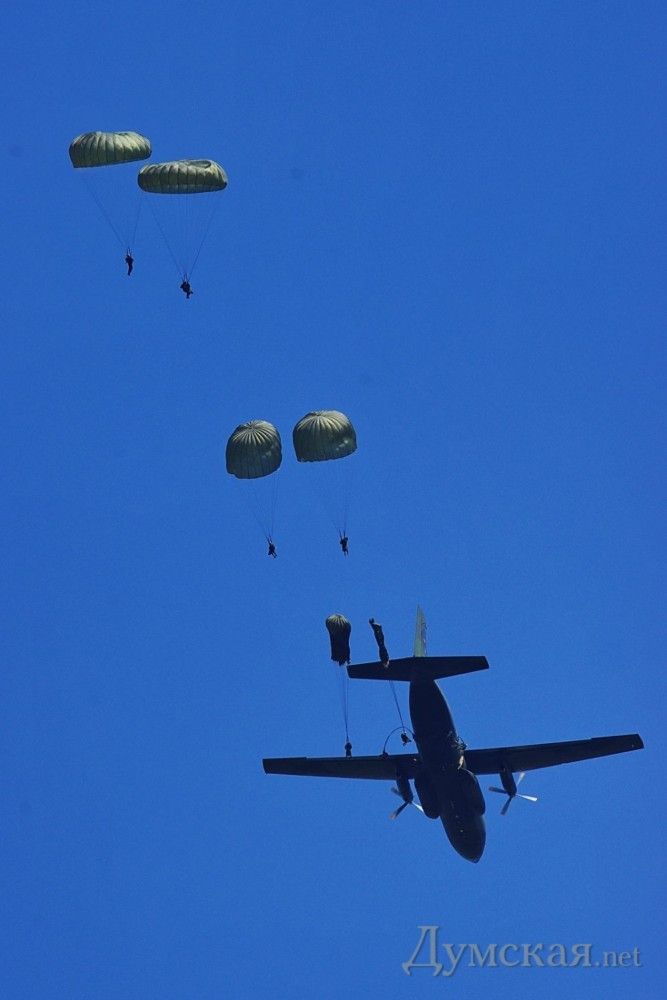 В рамках міжнародних військово-морських навчань "Сі Бриз-2013" українські військовослужбовці стрибали з парашутами і виконували низку тактичних завдань на полігоні в Чабанці під Одесою.