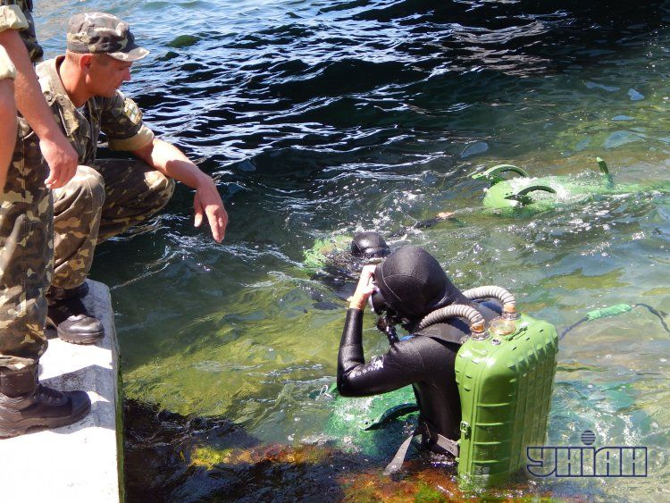 У Севастополі відбулась підготовка до спільного святкування Дня військово-морського флоту ВМС України і Росії. Під час підготовки відпрацьовували свої ролі різні підрозділи флоту, в тому числі й пловці.