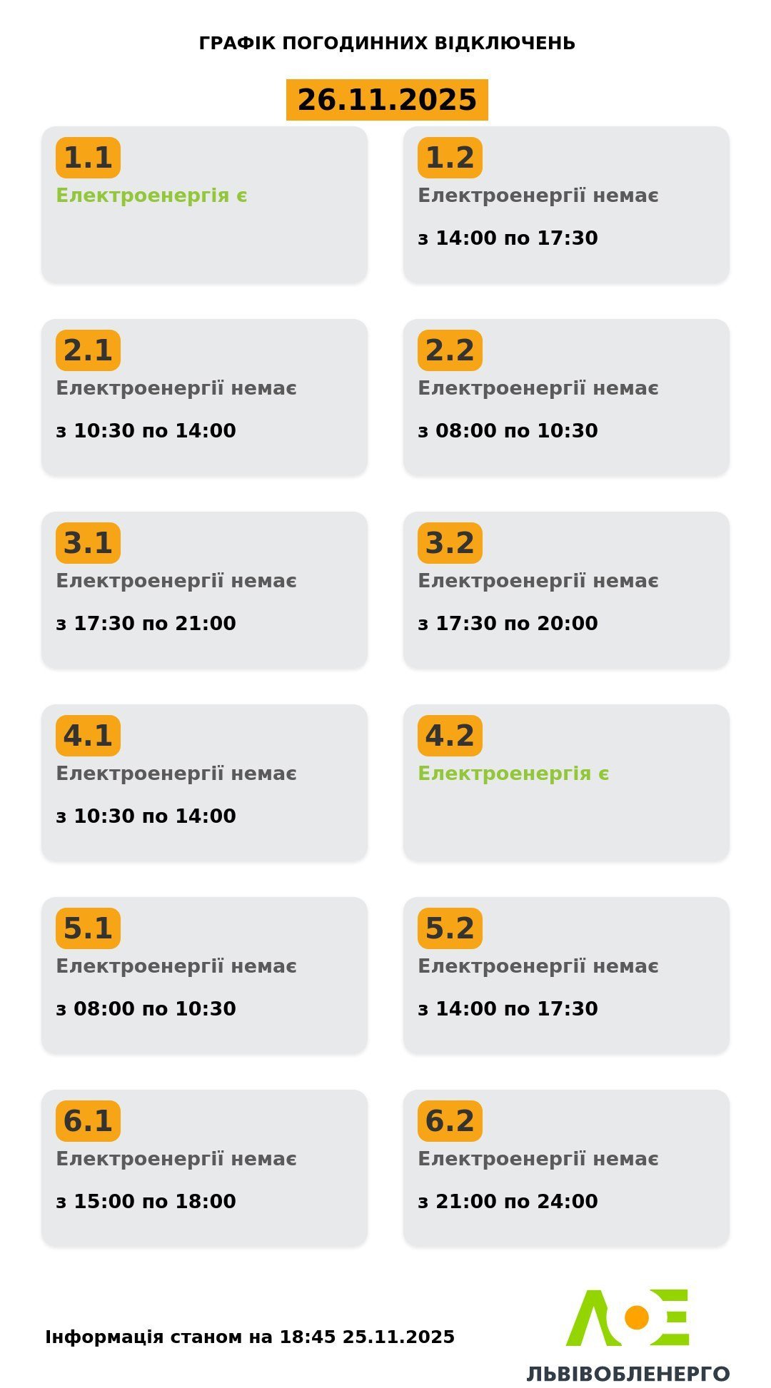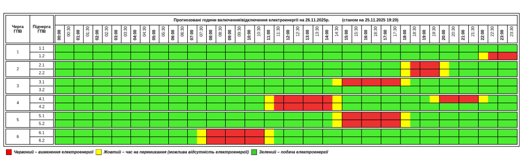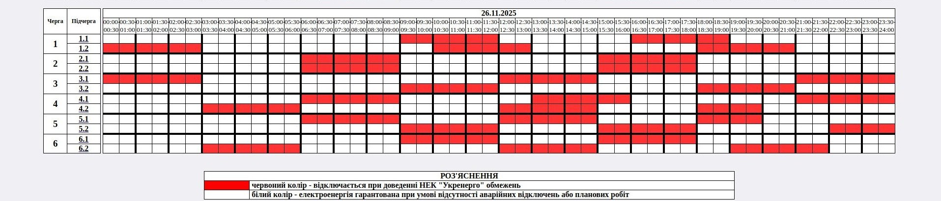 В Україні в середу, 26 листопада, запровадили погодинні графіки відключень світла по всій території країни. Єдина причина відключень — збройна агресія РФ проти України.