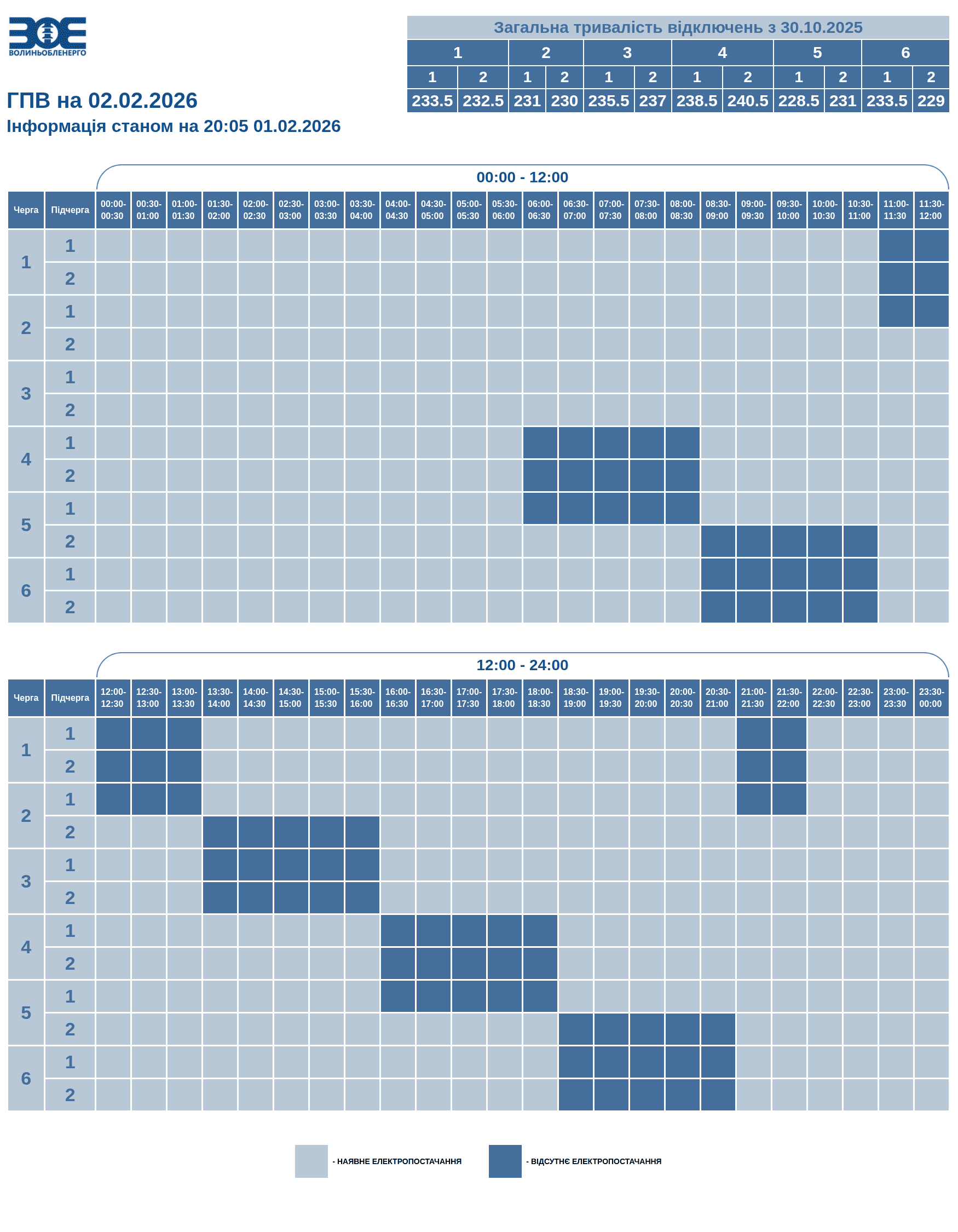 Години відсутності електропостачання по чергам (підчергам) (з урахуванням 30 хвилин на перемикання):