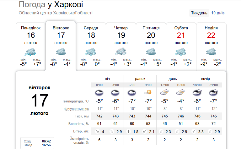 Прогноз погоди в Харкові на 17 лютого / © скриншот