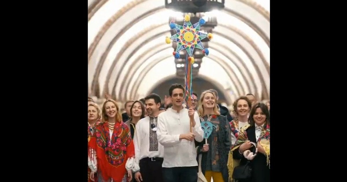 Після того, як у Київському метрополітені пролунала знаменита на цілий світ мелодія української пісні, представники посольств привітали з Різдвом українців англійською, французькою та німецькою мовами.