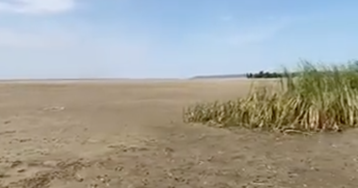 Український журналіст Денис Казанський опублікував відео з території Каховського водосховища, де замість води видніється величезна площа суші.