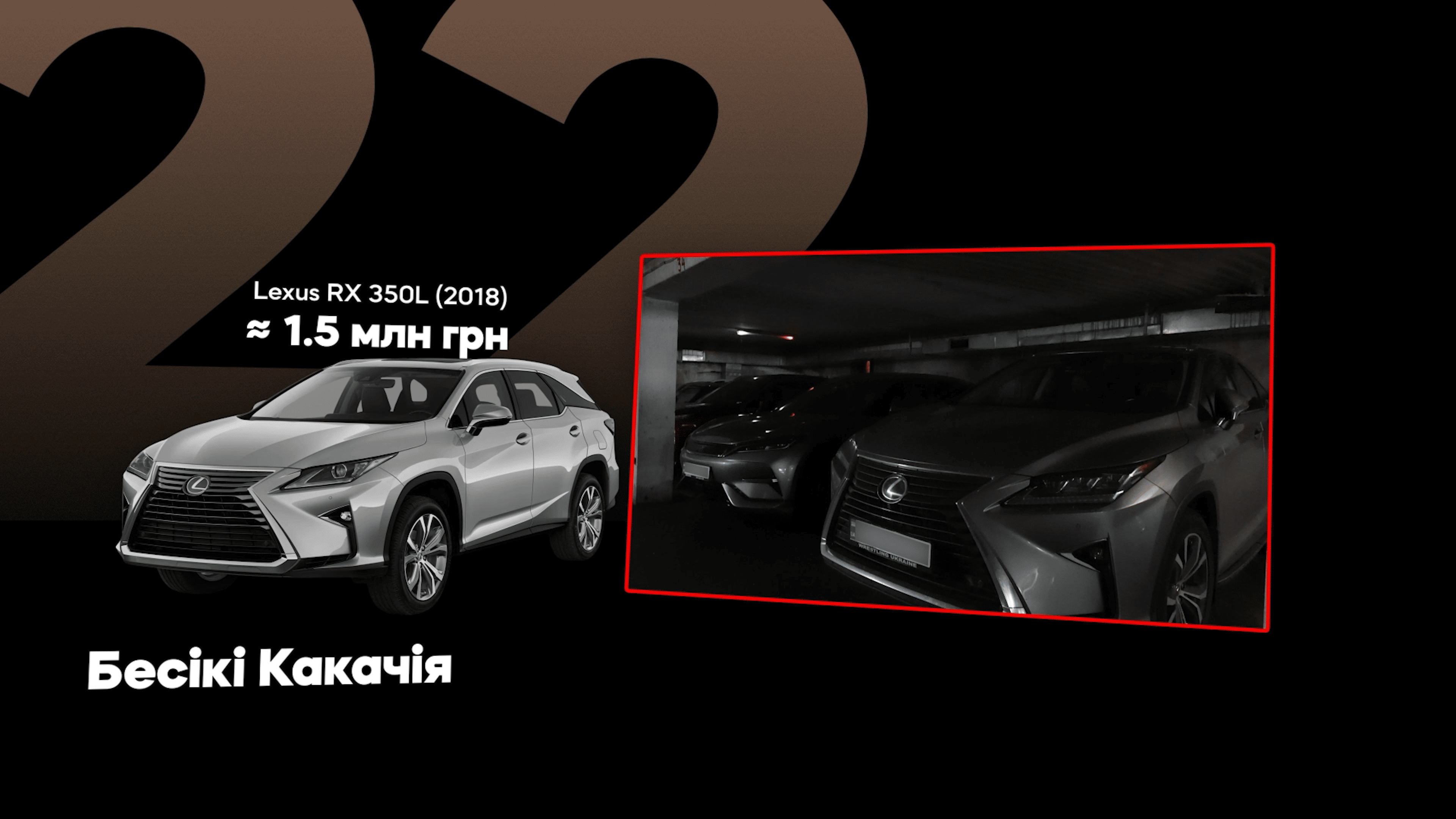 Бесікі Какачія також є власником автівки Lexus RX 350L 2018 року, про яку журналісти згадували раніше. Цю ж машину журналісти побачили на паркомісці, власницею якого у серпні 2022 року стала дружина Аркадія Васькевича — Алла Васькевич.