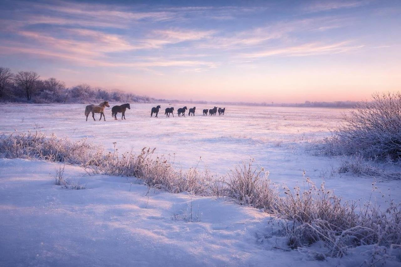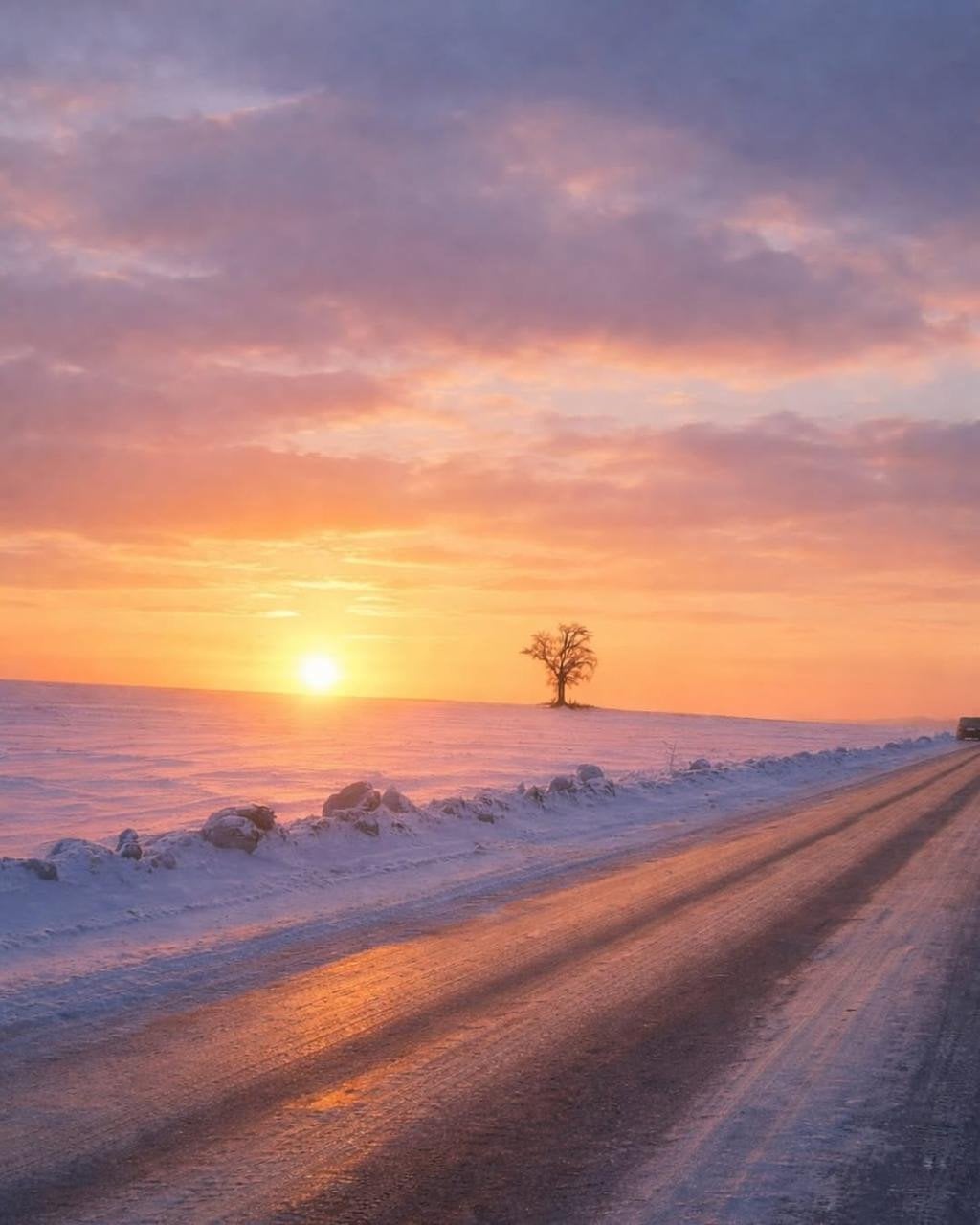 Зимовий пейзаж, який більше нагадує намальовану картину, ніж фото.