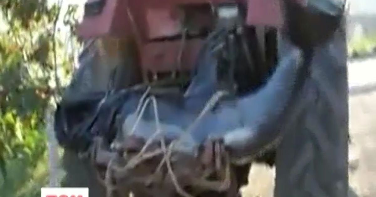 Але на відео чітко видно, як тварина б'ється хвостом і головою об колеса трактора.