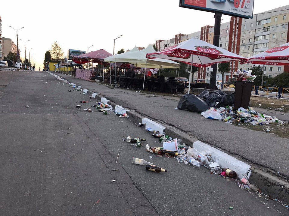 В Обухові у вихідні відсвяткували 655-ту річницю з дня заснування міста, проте після масових народних гулянь вулиці виявилися засипані сміттям.