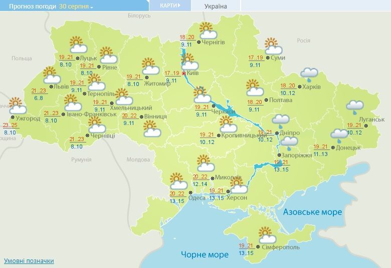 Прогноз погоди в Україні на 30 серпня 2017 року / © Укргідрометцентр