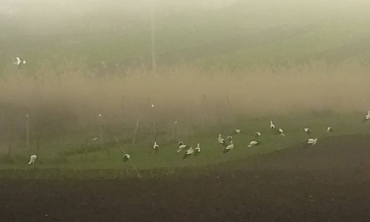У таких умовах птахи змушені сідати на землю та чекати покращення погоди. Саме це і сталося на Одещині: через дощі та тумани лелеки здійснили масову посадку на полях.