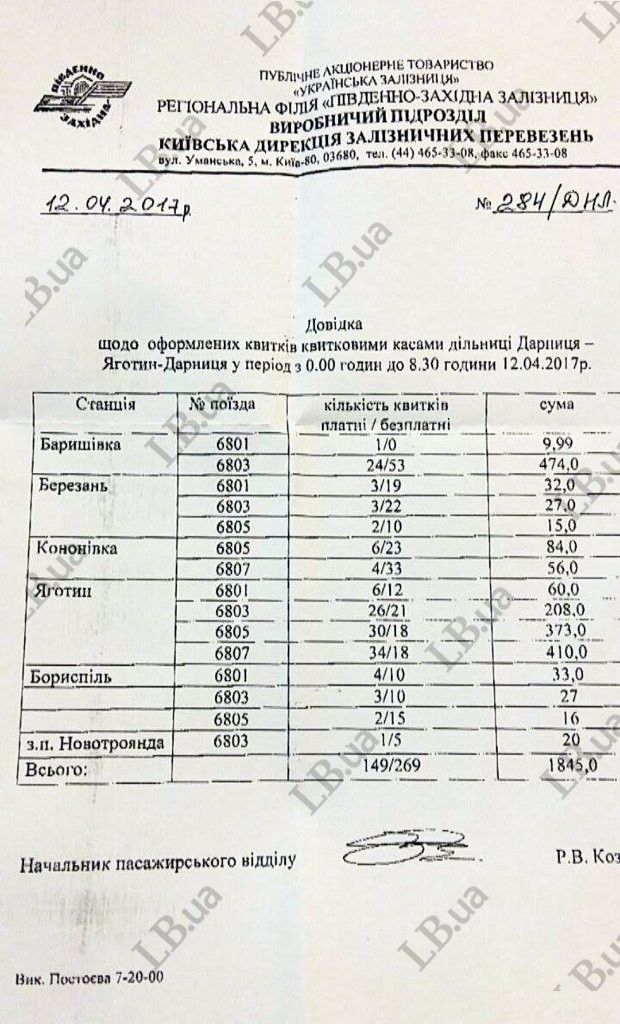Всього в касах станцій від Яготина до Києва на ці електрички було продано лише 71 квиток.