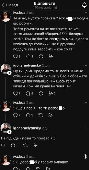 Діалог Іванни Кузьми та Ігоря Смілянського в Threads