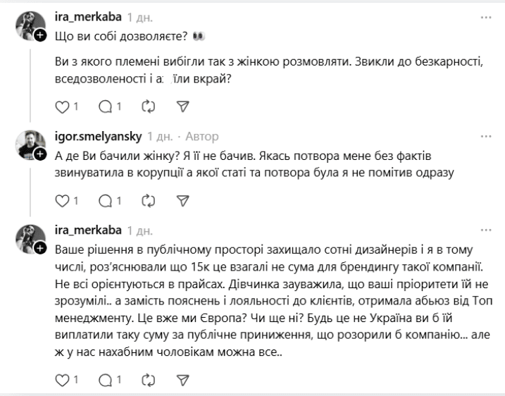 Такі висловлювання викликали різку реакцію Мережі. Одна з користувачок публічно обурилася стилем спілкування, заявивши, що така риторика є неприпустимою: