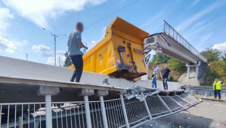 Поблизу Умані на трасі М-05 Київ — Одеса 6 серпня обвалився пішохідний міст. Він упав на проїжджу частину. Попередньо травмованих немає.
