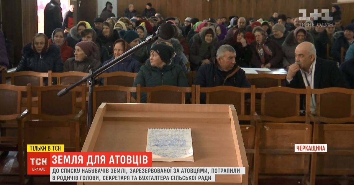 На Черкащині розгорівся скандал через те, що до списку на землю для ветеранів АТО потрапили вісім родичів керівництва села Вотилівка, котрі жодним чином не брали участі в бойових діях на Донбасі. Це з'ясували лише через рік, коли вже готові документи прийшли до районної ради на затвердження кошторису, йдеться в сюжеті ТСН.19:30.