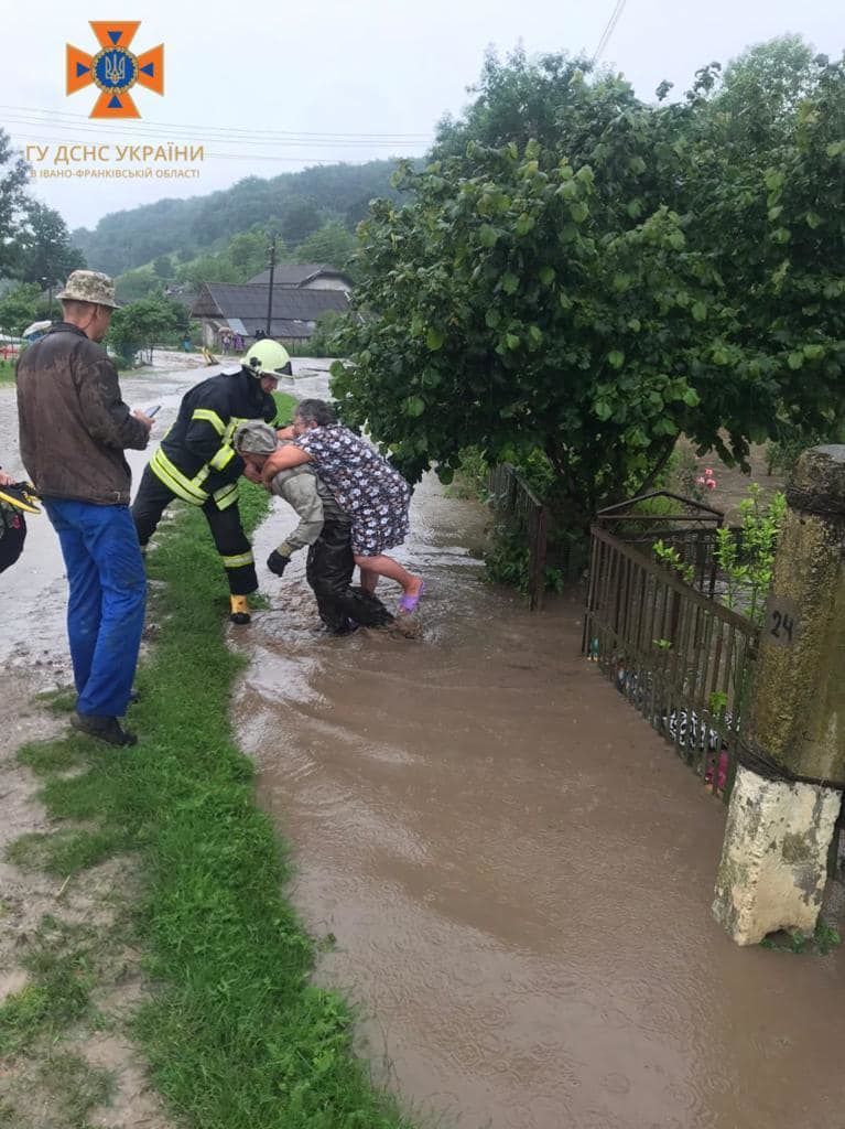 В Івано-Франківській області, у селі Яглуш з підтоплених через негоду будинків довелося рятувати людей та тварин. Через сильні опади з берегів вийшов місцевий потічок та підтопив п’ять житлових будинків та вісім господарських споруд. У пастці опинилися люди.