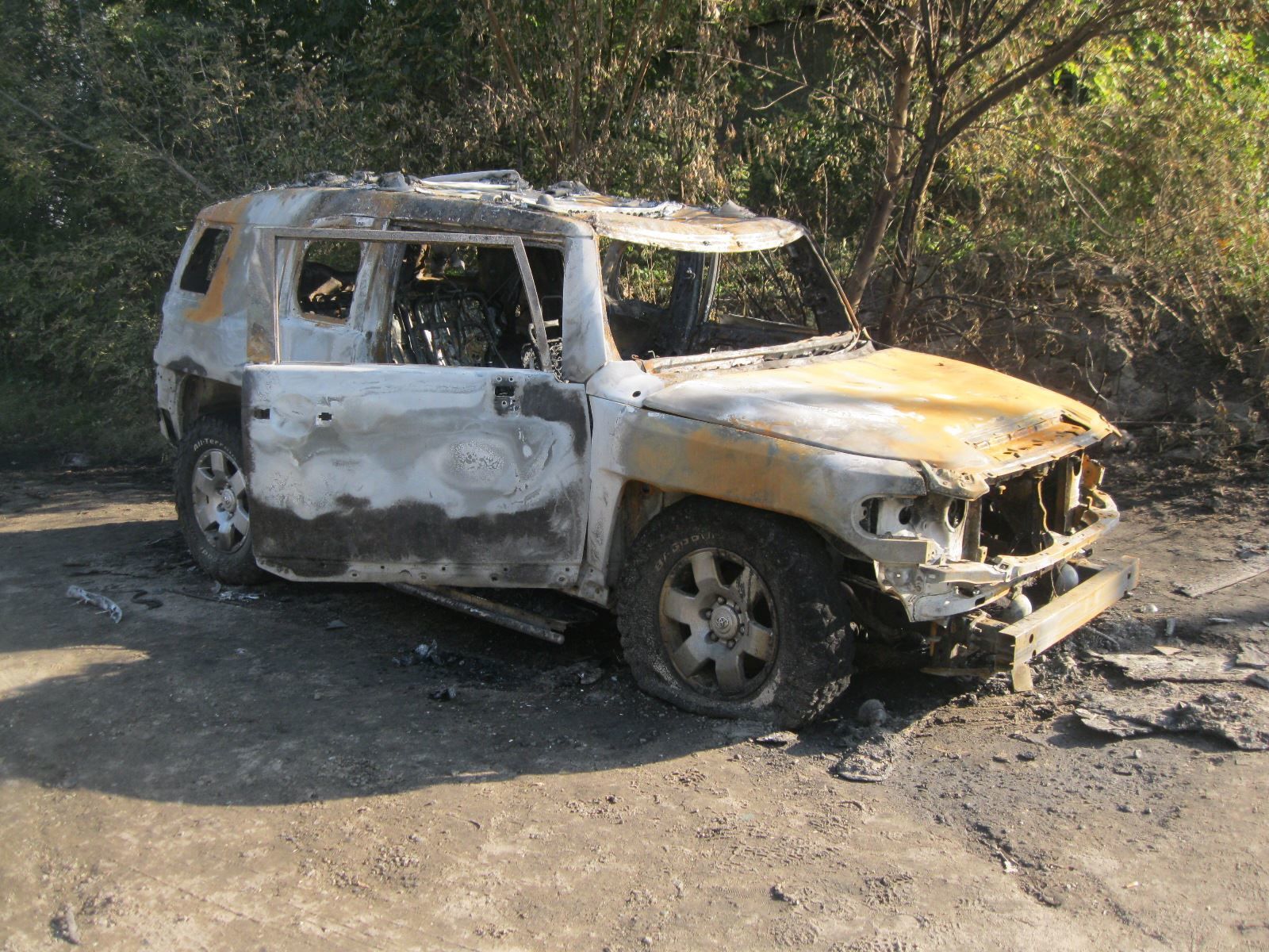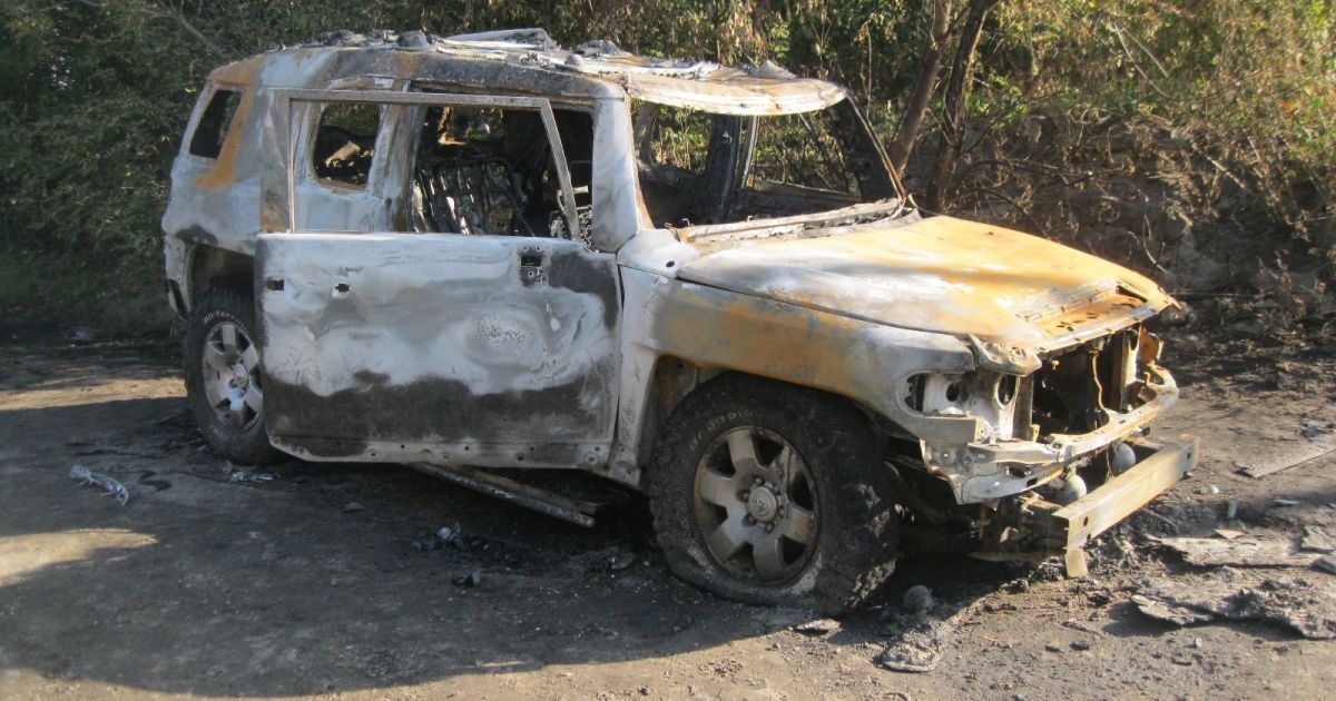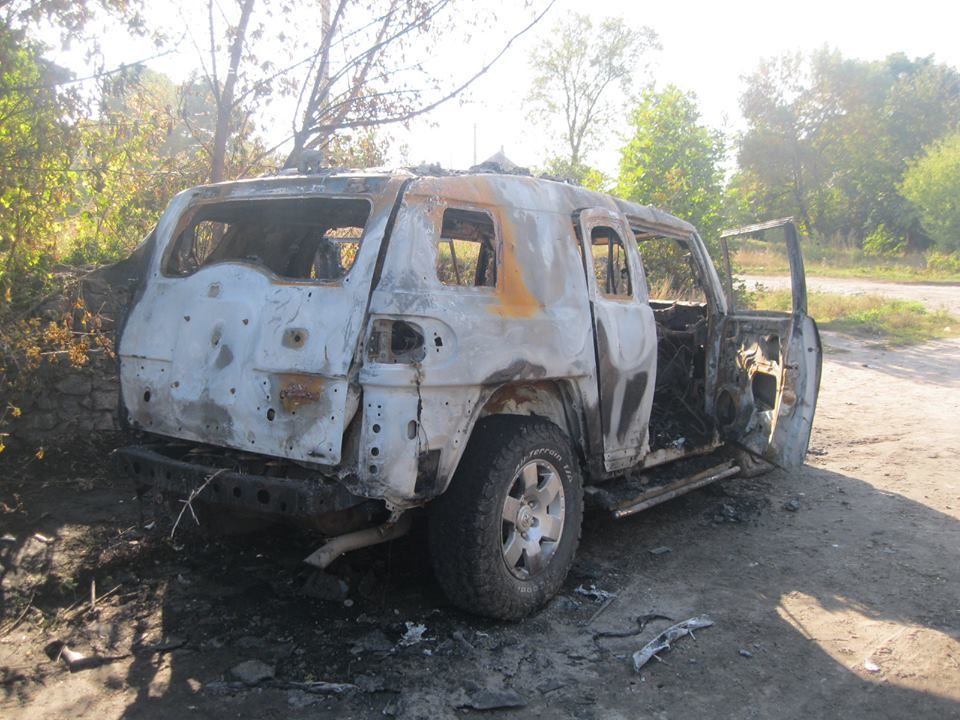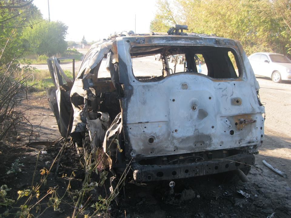 Автомобіль після обстрілу вигорів вщент.