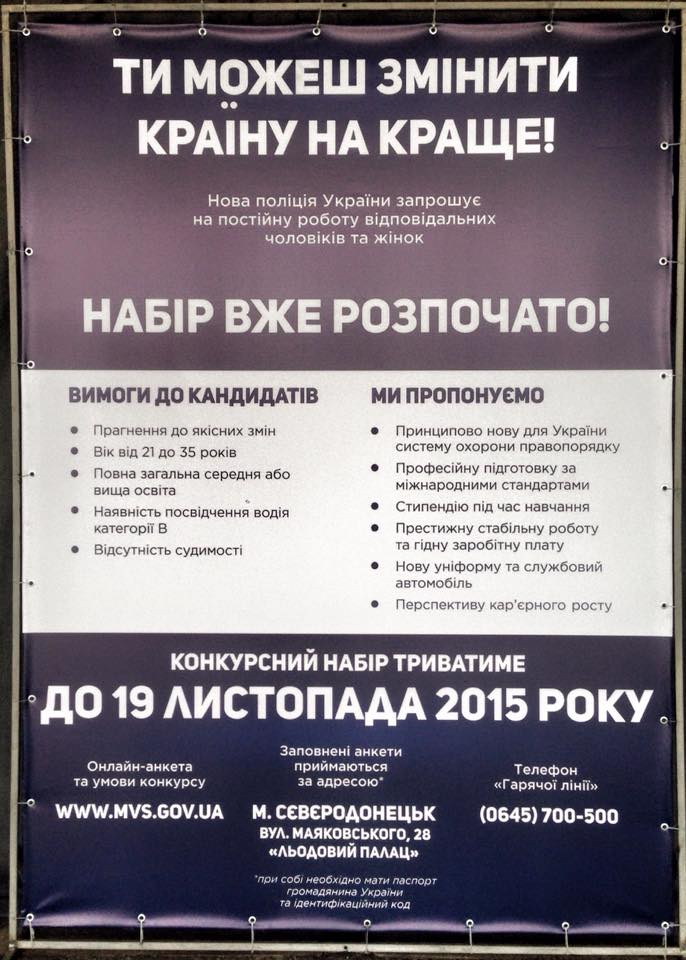 Набір усіх охочих служити у поліції проходитиме щодня з 9:00 до 18:00 у Сєвєродонецьку за адресою вул. Маяковського, 28 ("Льодовий палац") або цілодобово на офіційному сайті МВС.