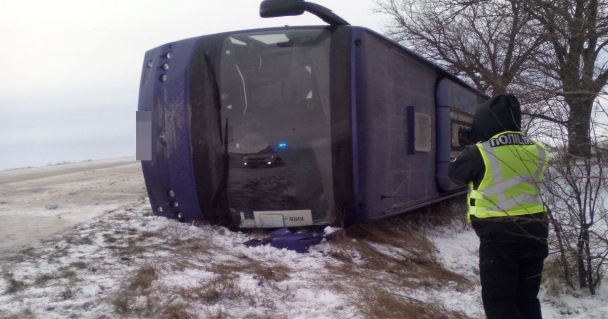 В Одеській області через слизьку дорогу пасажирський автобус перекинувся у кювет