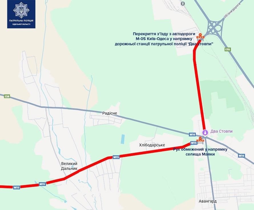Як повідомляється, обмеження руху транспорту в обох напрямках на автодорозі М-15 Одеса — Рені (на м. Бухарест) у межах населеного пункту Маяки — зняті.