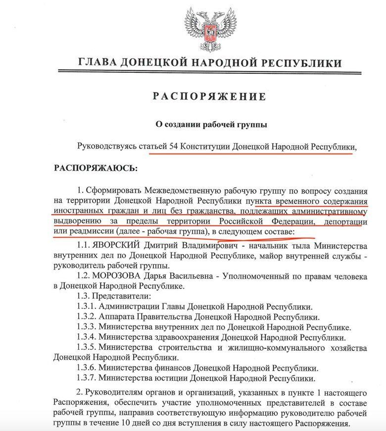 Андрющенко сказав, що окремо потрібно звернути увагу на "реадмісію, тому, що "у випадку "ДНР" жодна реадмісія неможлива в принципі. Простіше кажучи, це означає довічне утримання в концтаборі.