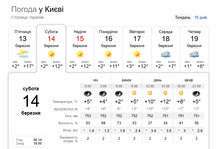Погода в Києві 14 березня / © скриншот
