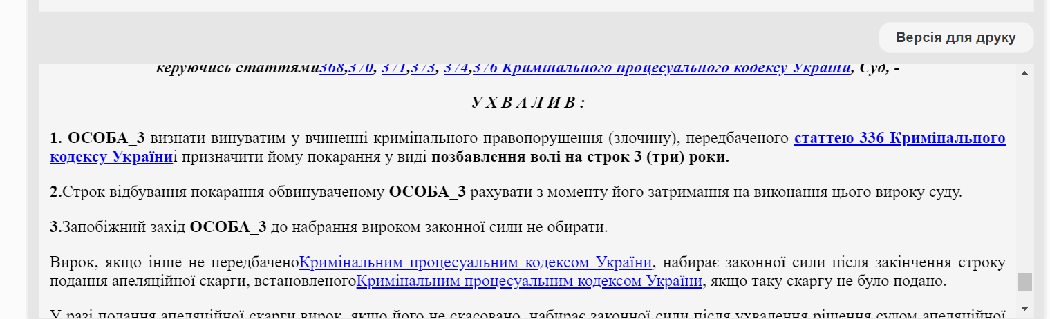 Вирок суду / © Єдиний державний реєстр судових рішень